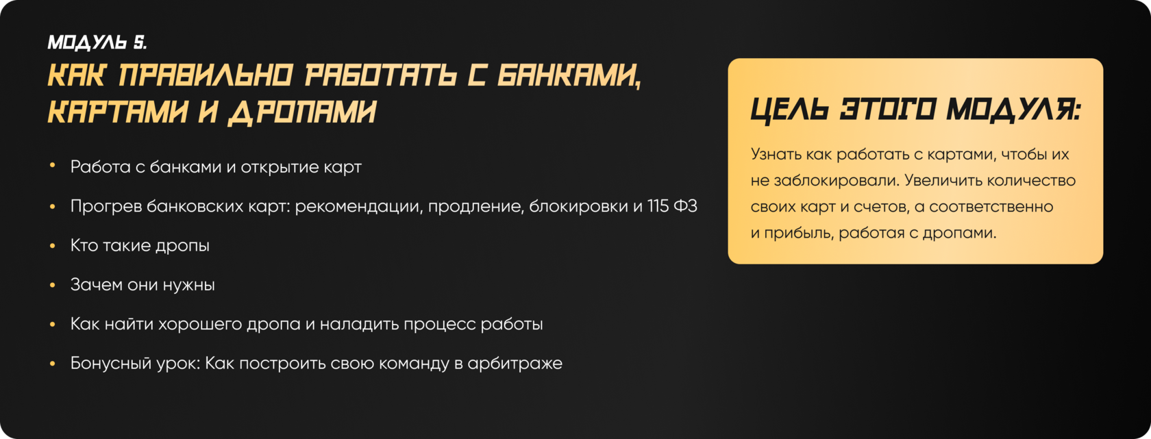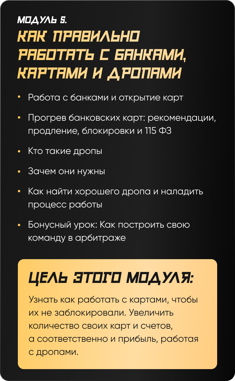 Модуль 5: Как правильно работать с банками, картами и дропами