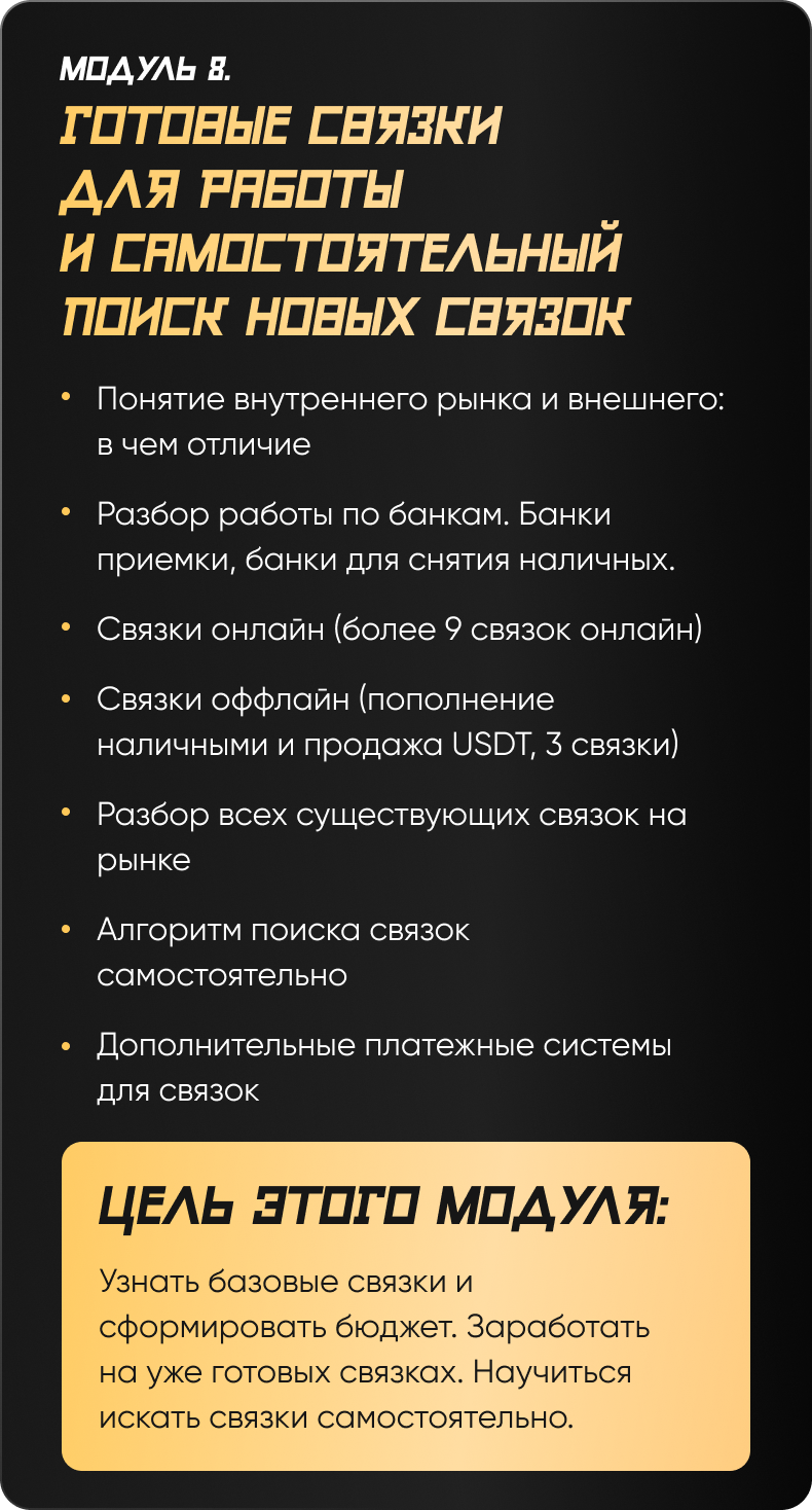 Модуль 8: Готовые связки для работы и самостоятельный поиск новых связок