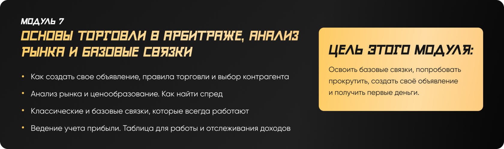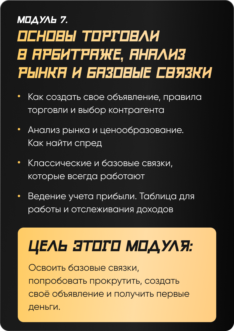 Модуль 7: Основы торговли в арбитража, анализ рынка и изучение базовых связок