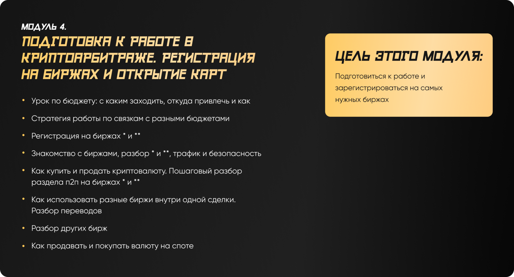 Модуль 4: Подготовка к работе в криптоарбитраже. Регистрация на биржах и открытие карт