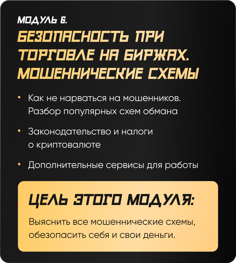 Модуль 6: Безопасность при торговле. Разбор мошеннических схем и работа с картами